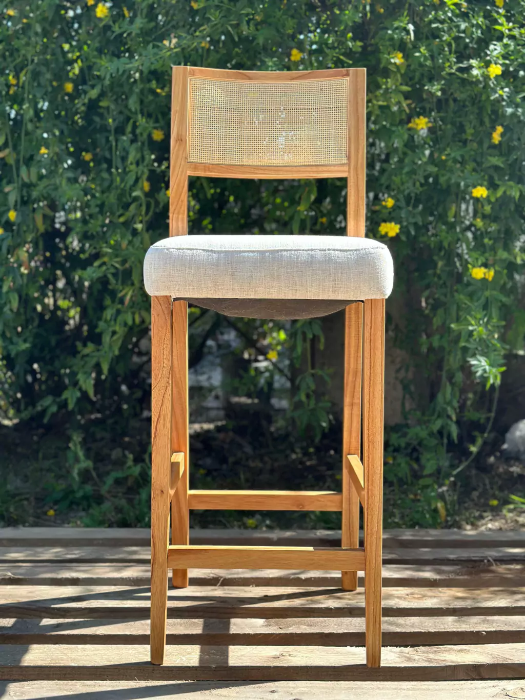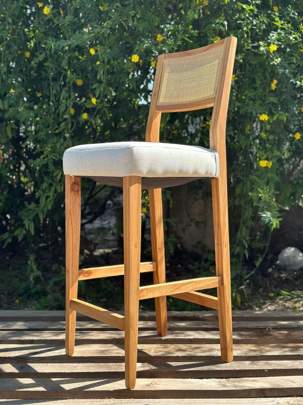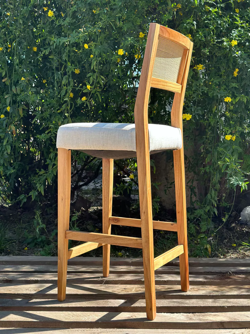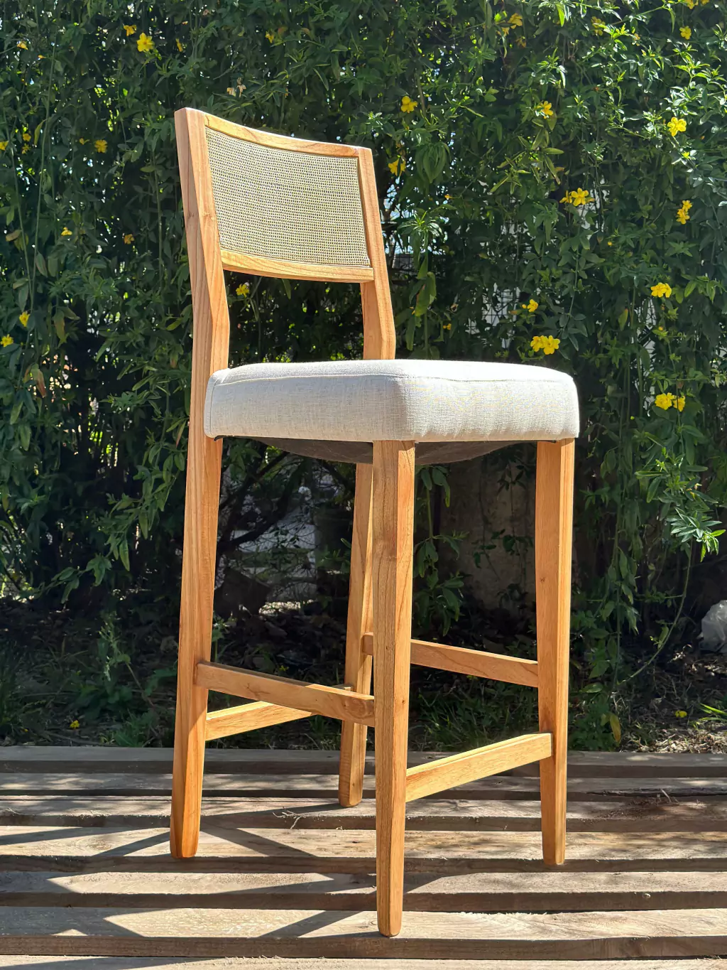 Fabricado en madera maciza de Lenga o Petiribi, lustrado en taller con hidrolaca satinada, tapizada en lino rustico de la mejor calidad