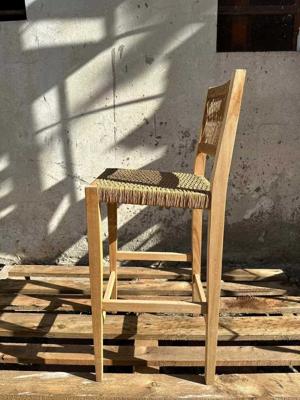 Fabricado en madera maciza de Lenga, lustrado en taller con hidrolaca satinada, tejido en hilo kraft de la mejor calidad y durabilidad