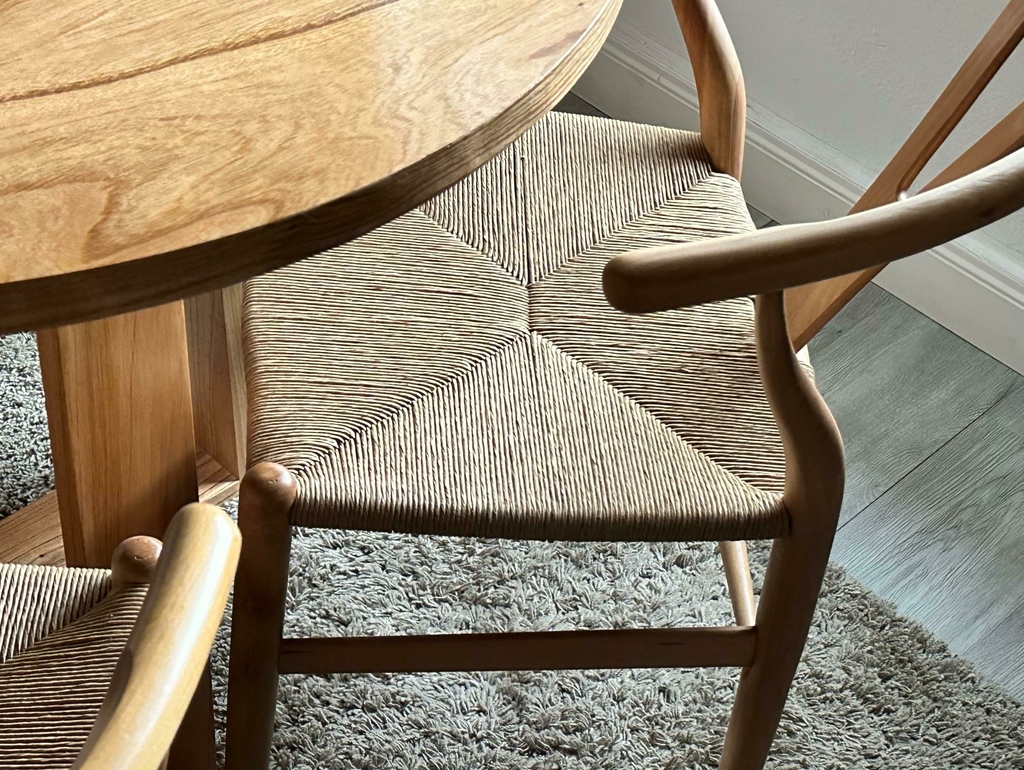 Fabricado en madera de Paraiso o Petiribi, lustrado en taller con hidrolaca satinada, tejido en hilo kraft de la mejor calidad y durabilidad