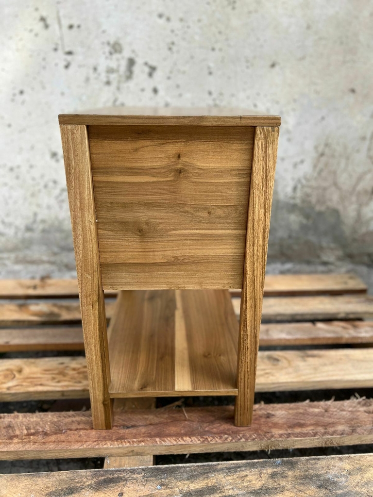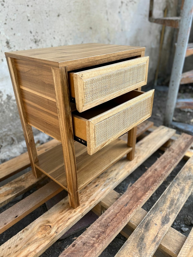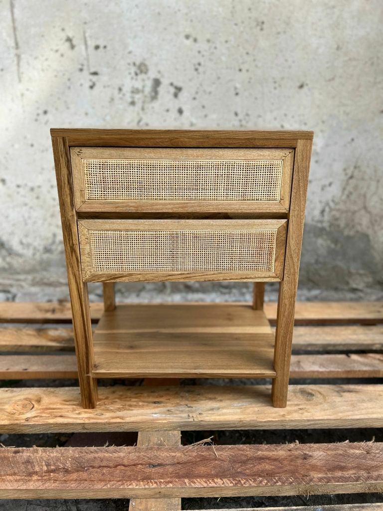 Mesa de luz en madera petiribi 2 cajones esterilla vegetal natural, correderas telescopicas