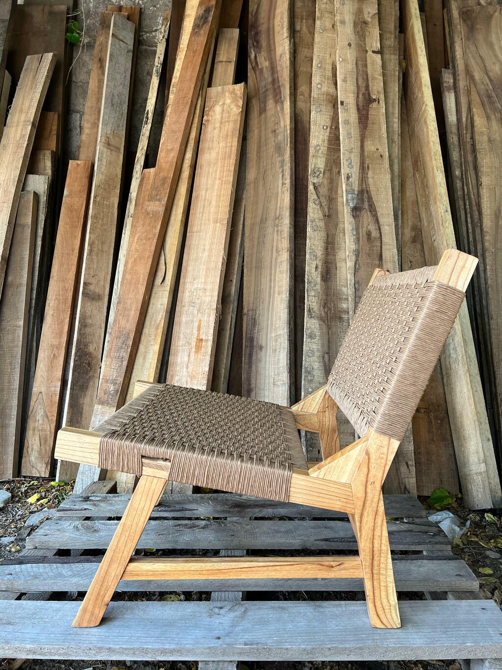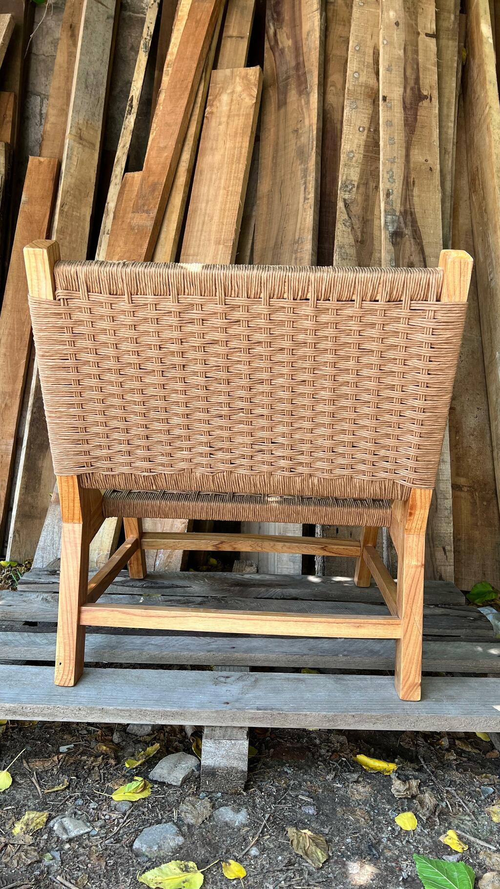 Fabricado en madera maciza de Lenga o Petiribi, lustrado en taller con hidrolaca satinada, tejido en hilo kraft de la mejor calidad y durabilidad