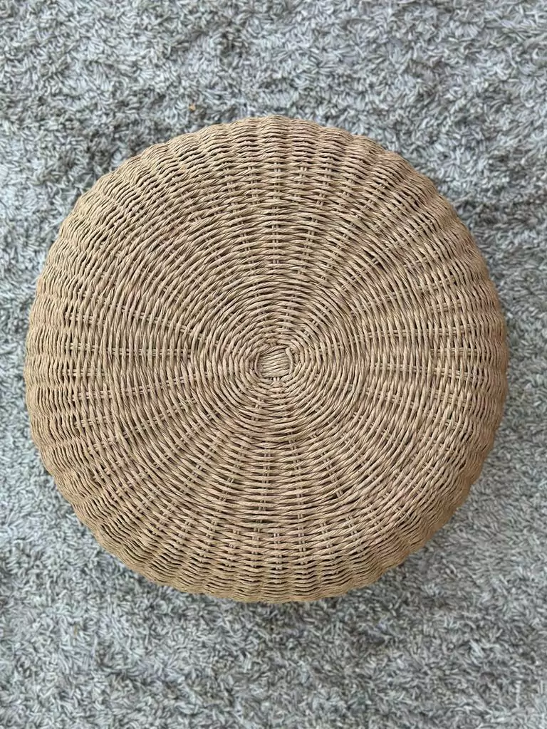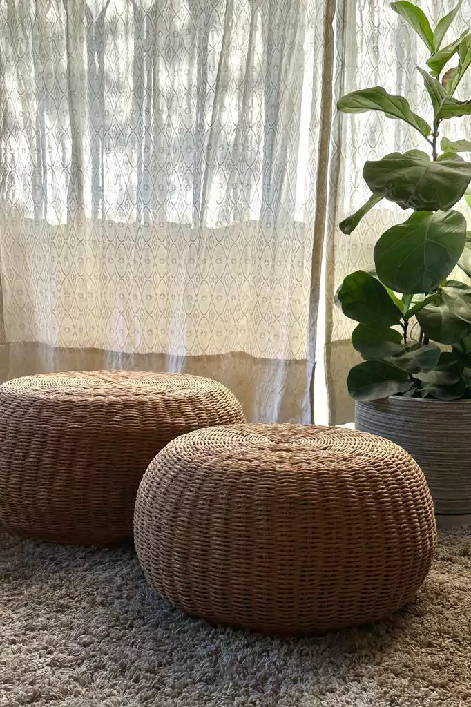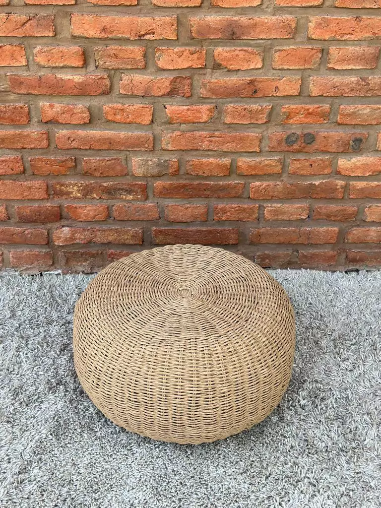 Puff nordico estructura madera tejido en hilo kraft de alta calidad.