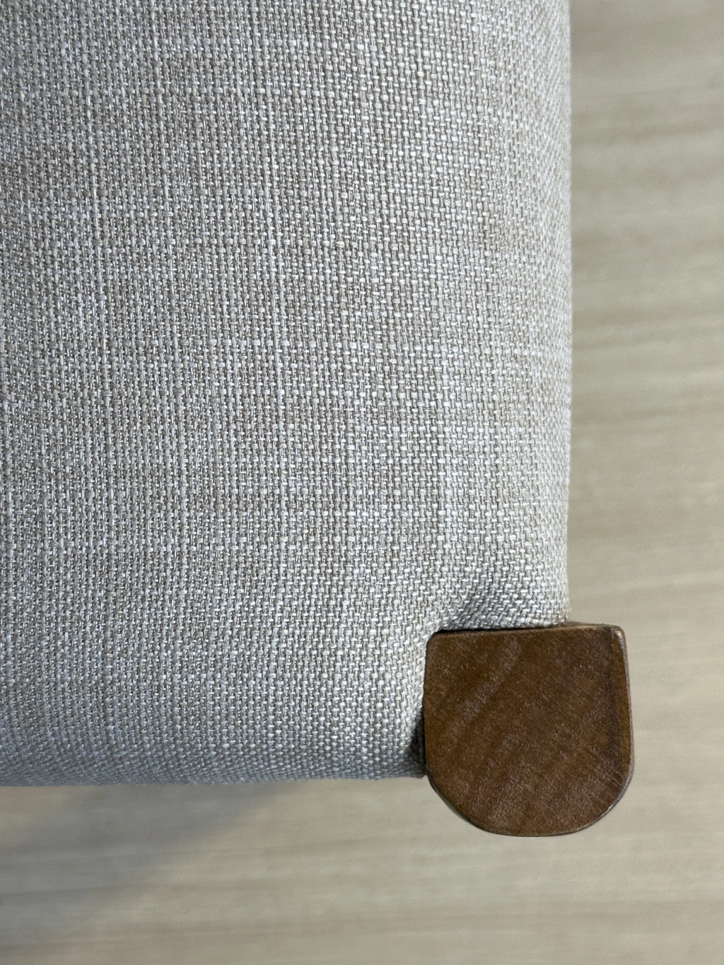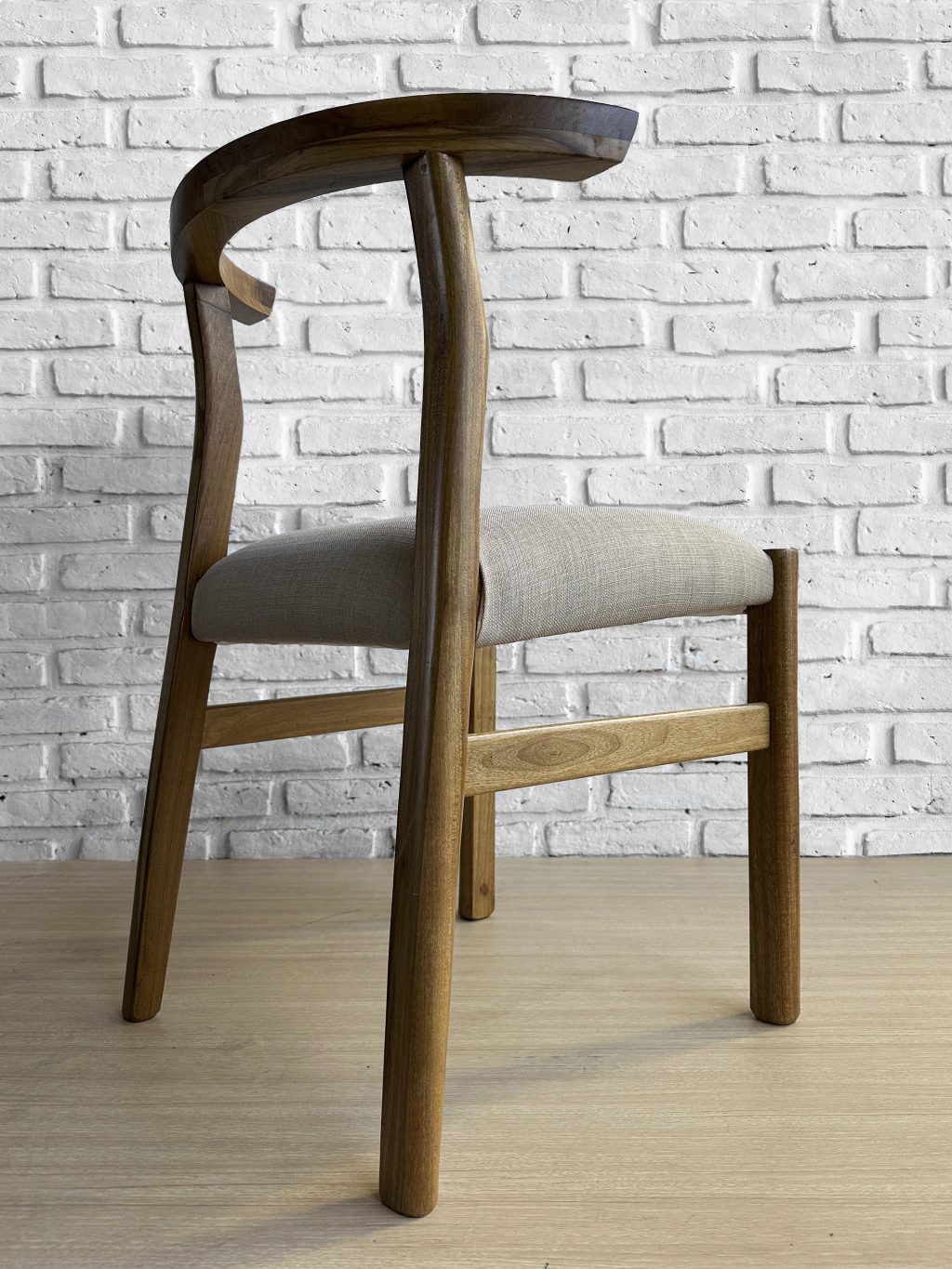 Fabricado en madera maciza de Lenga o Petiribi, lustrado en taller con hidrolaca satinada, tapizado en lino rustico