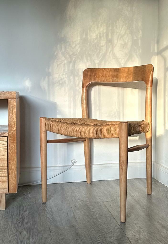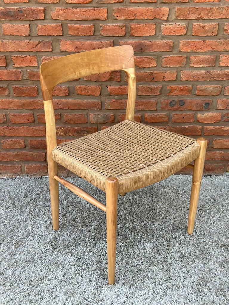 Fabricado en madera maciza de Lenga o Petiribi, lustrado en taller con hidrolaca satinada, tejido en hilo kraft de la mejor calidad y durabilidad