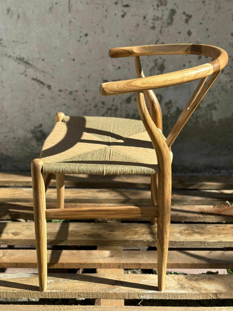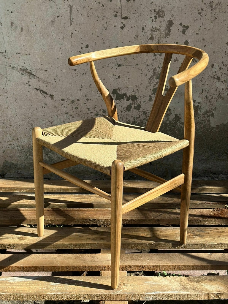Fabricado en madera maciza de Lenga o Petiribi, lustrado en taller con hidrolaca satinada, tejido en hilo kraft de la mejor calidad y durabilidad