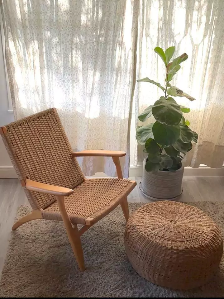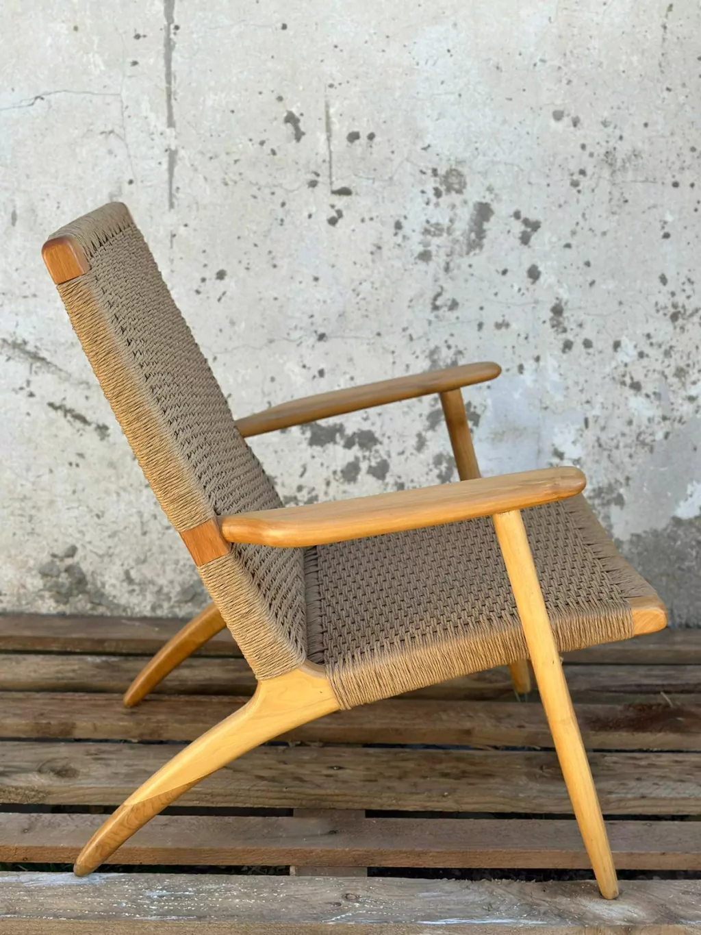 Fabricado en madera maciza de Lenga o Petiribi, lustrado en taller con hidrolaca satinada, tejido en hilo kraft de la mejor calidad y durabilidad